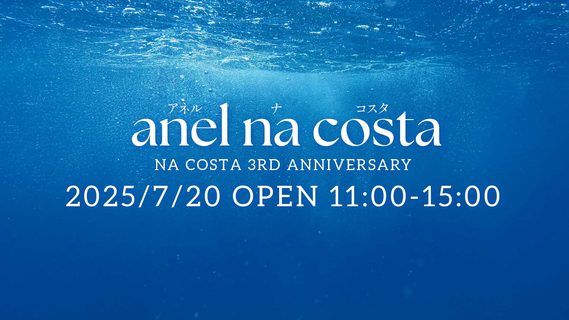 anel na costa [アネル・ナ・コスタ]が NA COSTAオープン3周年 海の日に幕を開けます。
